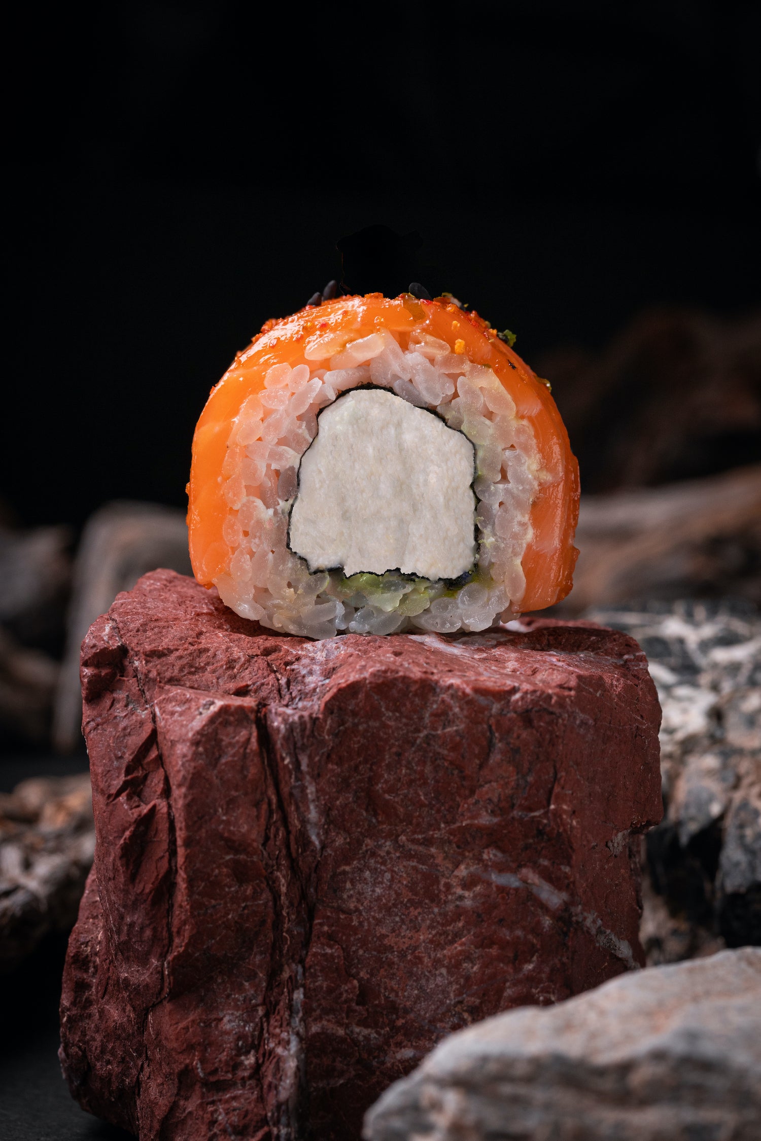 8 pieces. Philadelphia cheese, rice, nori and soy sauce